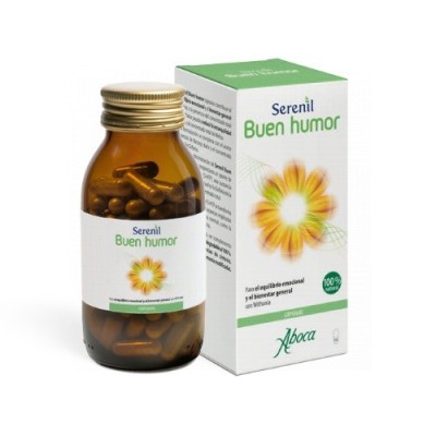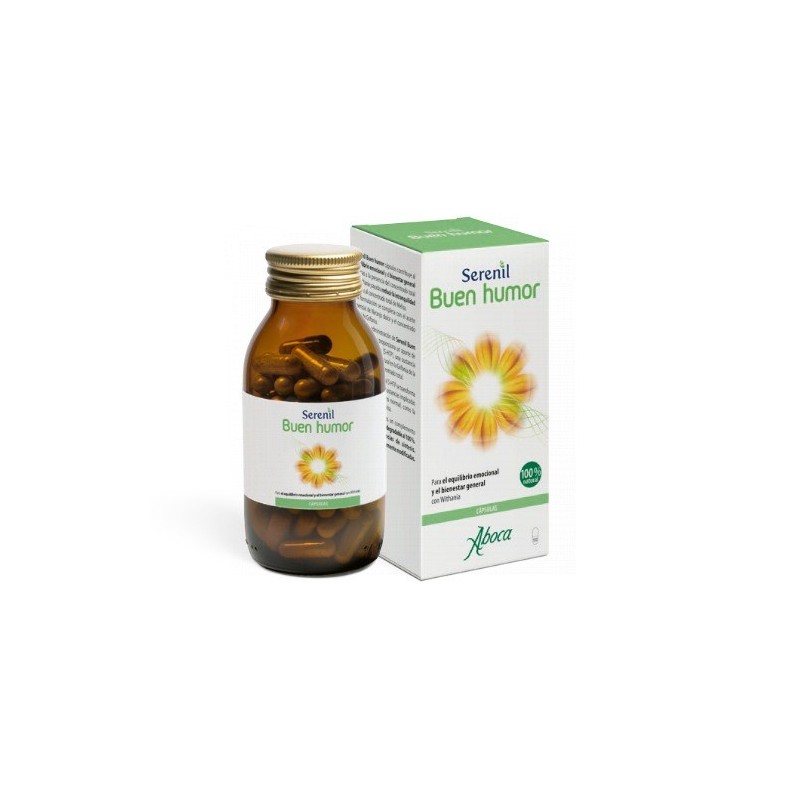 Serenil Buen humor cápsulas contribuye al equilibrio emocional y al bienestar general gracias a la presencia del concentrado total de Withania y ayuda a reducir la intranquilidad gracias al concentrado total de Melisa. Su formulación se completa con el aceite esencial de Naranjo dulce y el concentrado total de Grifonia. Además, la administración de Serenil Buen humor cápsulas proporciona un aporte de 5-hidroxitriptófano (5-HTP), una sustancia presente de forma natural en la Grifonia de la que se obtiene el concentrado total.