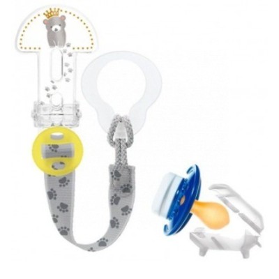 El broche se adapta a todo tipo de chupetes. Longitud ajustable.