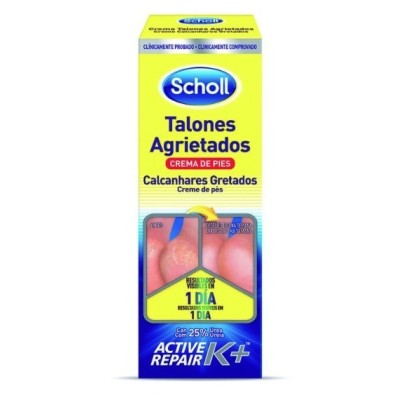 La crema para talones agrietados de Scholl repara tus talones para unos resultados visibles en 1 día. Contiene 25% Urea y Keratina Active Repair K+, un ingrediente clínicamente probado para ayudar al proceso natural de recuperación del cuerpo ayudando a construir un soporte natural e impulsar la reparación de la piel.